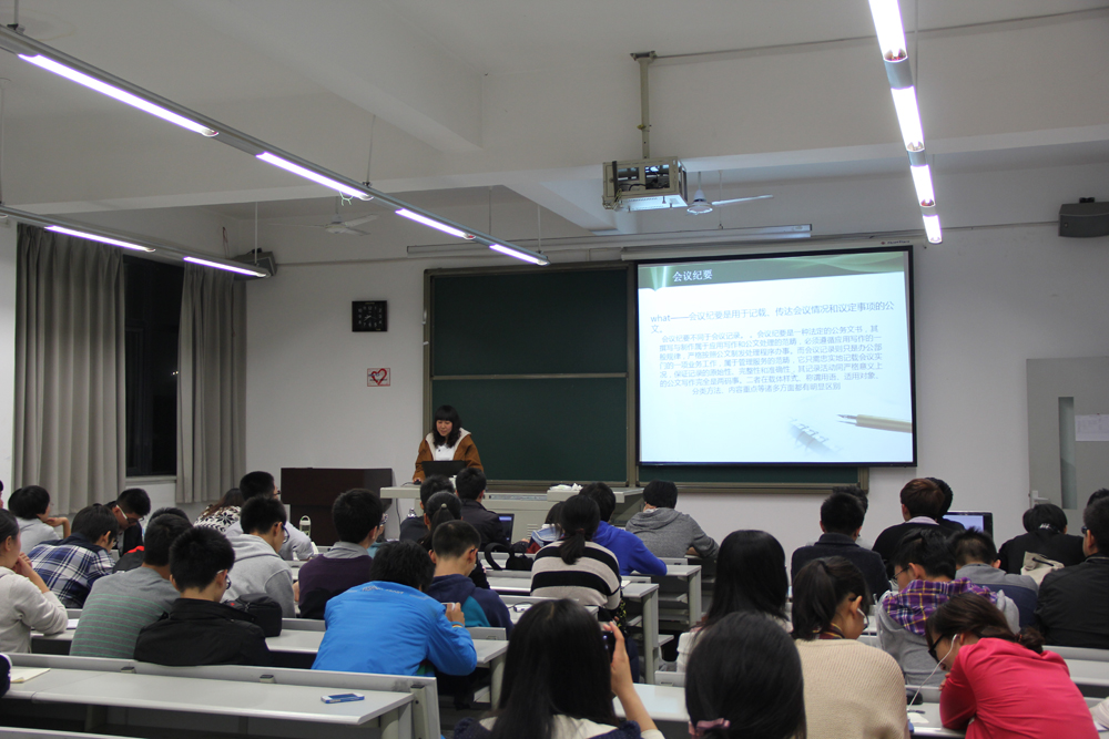 学生会承办。各学生组织骨干以及众多对公文写作感兴趣的大一新生参加了本次培训会。