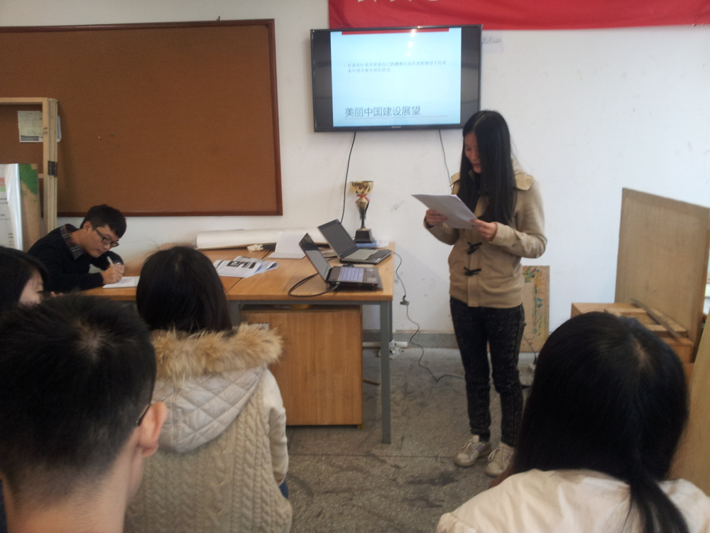 本次支部活动以党的十八大报告提出的要把生态文明建设放在突出地位,融入经济建设、政治建设、文化建设、社会建设各方面和全过程,努力建设美丽中国,实现中华民族永续发展为背景,结合自身景观设计的专业知识,开展美丽中国学习交流活动,为实现美丽中国梦贡献一份力量。