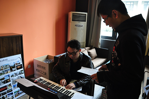 “教职工之家”展开。报名同学众多,长长的队伍显露出同学们对于合唱的热情,不少同学还在轻声哼唱。队伍的最前方是主考核张老师,他坐在电子琴前,分别对同学们的音准、节奏、试唱三个方面进行了考核。接受考核的同学们表现大方,大胆地配合主考核老师唱出声来。
