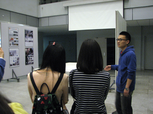 中庭墙面所展示的优秀设计作业、学生创新基地建设等进行具体讲解。在2013级研究生胡文韵同学(西南交大研究生“英语演讲秀”第四名获得者)的带领下,同学们来到了九色视频
