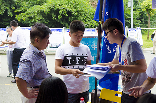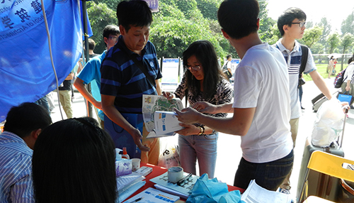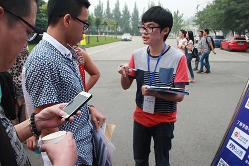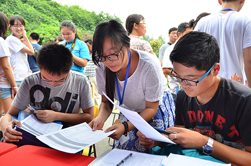 班主任以及志愿者们正在为新生们介绍开学注意事项