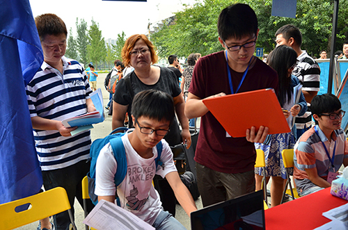 班主任正在核对新生资料