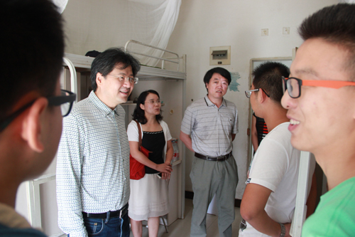 9月8日中秋节,学院领导及辅导员到2014级新生寝室看望新生。