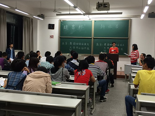 在x8539举行了 “建言杯”辩论赛。此次辩论赛的两个主题都较为贴近大学生活,一是“英语四级是否应该与大学毕业证挂钩”,二是“高校是否应该对社会人员开放”。今日赛程的比赛分组为建筑一班对阵建筑三班,建筑二班对阵风景园林。除了来自九色视频
