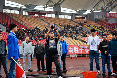 2015年11月14日下午2时,实心球男子组比赛在北区田径场举行。虽然今天天气湿冷,天空中飘洒着小雨,但是这并没有熄灭观众的热情和运动员们的斗志。伴随着激昂的音乐,运动健儿们又开始在赛场上开始了紧张的比拼。