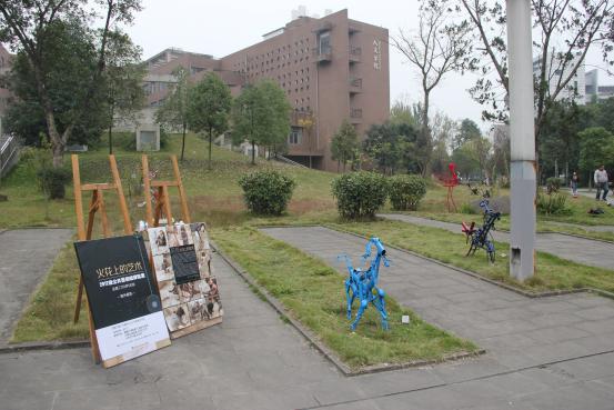 主办,2012级绘画专业承办的“火花上的艺术”2012级公共艺术课程组课程展在8号教学楼外草坪拉开帷幕。