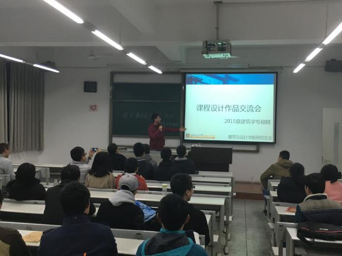 研究生会主办、2015级建筑学专硕班承办的“课程设计作品交流会”在建筑馆8521顺利举行。这次活动的主要目的是让同学们通过此次国际竞赛作品交流,发现彼此间设计上的知识欠缺和经验不足,为以后的建筑设计学习提供专业上的帮助。