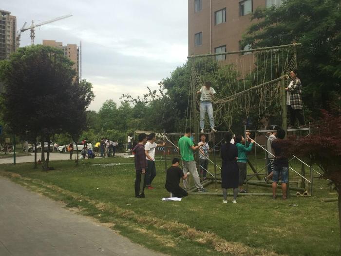 的同学们也在积极组织建造,力争更快更好地在最后几日里完成搭建的任务。