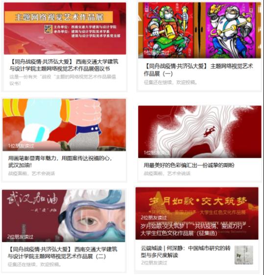 We took active part in social practice. Valuing both the importance of cultural environment and practice, we carried out serial cultural social services, many community-based, so as to promote the fine culture of SWJTU and boost the confidence to discipline development. This summer vocation, the social practice program “The design and promotion of psychological counseling for junior high school students under normalized epidemic prevention and control”was listed as one of the “SWJTU Excellent Social Practice Programs”. Through serving the pubic and carrying forward culture, our students deepened their understanding of art and culture.