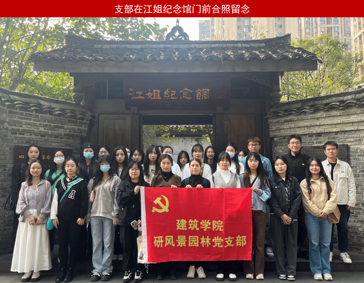 为深入学习习近平新时代中国特色社会主义思想,牢牢把握“学思想、强党性、重实践、建新功”的总体要求,弘扬中华民族的革命精神和红色传统,研风景园林党支部于2023年11月9日在四川大学望江校区江姐纪念馆开展“学习红色精神,缅怀革命先烈”主题党日活动。本次活动由研2022级风景园林班党支部联系人杜璇主持,全体学生党员及部分积极分子参加。