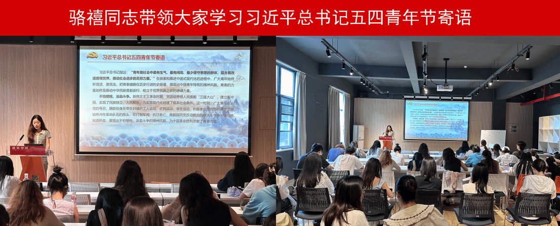 第二项议程是学习习近平总书记五四青年节寄语。骆禧同志带领大家认真学习了习近平总书记在五四青年节期间的重要讲话精神,结合习近平总书记的“广大青年要继承和发扬五四精神,坚定不移听党话、跟党走,争做有理想、敢担当、能吃苦、肯奋斗的新时代好青年,在推进强国建设、民族复兴伟业中展现青春作为、彰显青春风采、贡献青春力量,奋力书写为中国式现代化挺膺担当的青春篇章。”,她鼓励大家要珍惜青春时光,努力学习投身科研,积极参与社会实践和志愿服务活动,为实现中华民族伟大复兴的中国梦贡献青春力量。