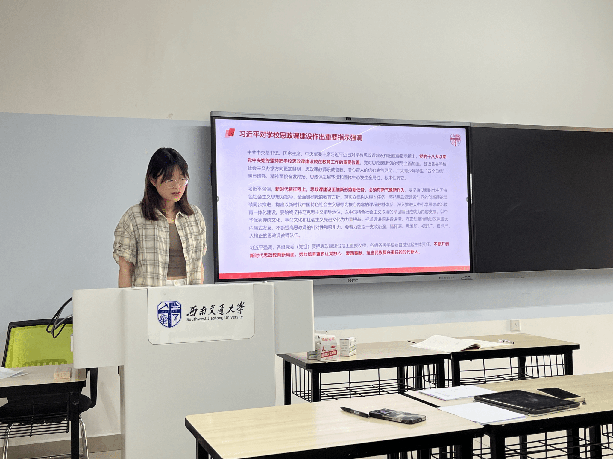会议第二项,肖华玥同志带领大家集中学习习近平总书记对学校思政课建设作出的重要指示精神。党的十八大以来,思政课建设放在教育工作的重要位置,肖华玥同志重点从党对思政课建设全面领导、思政课教师潜心育人底气更足、青少年学生“四个自信”明显增强等方面深入讲解。金凤同志指出,我们要认识到学校思政课程建设对教师和青少年学生成长的重要性,以新气象新作为开创思政教育新局面。