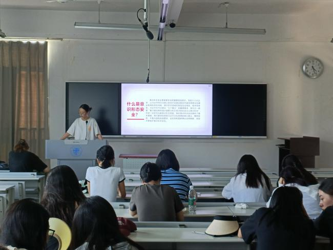 最后许倩同志对本次活动进行总结。她强调,通过举办本次主题党日活动,支部全体党员和积极分子进一步认识了维护意识形态安全的重要性。作为新时代的大学生,我们要认真贯彻落实习近平总书记关于意识形态工作的重要论述,坚决扛起维护意识形态安全的政治责任。
