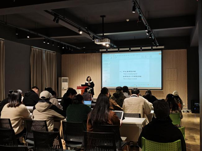活动伊始,张樱子老师以“什么是研究计划,如何设计一个研究计划”为切入点,将“设计研究计划”比喻成“做一道菜”,对“如何设计研究”这一问题进行了通俗易懂的讲解。随后,张老师结合实际研究案例和现场互动讨论,循序渐进地引导在场同学通过问题导向确定研究的核心内容,帮助同学们理解整个论文撰写过程中包括研究课题确定、研究方案设计、数据搜集分析和判断等多维度的内容,为在场的同学们充分答疑解惑,提供切实可行的建议。活动现场气氛热烈,掌声不断,同学们纷纷表示受益匪浅。