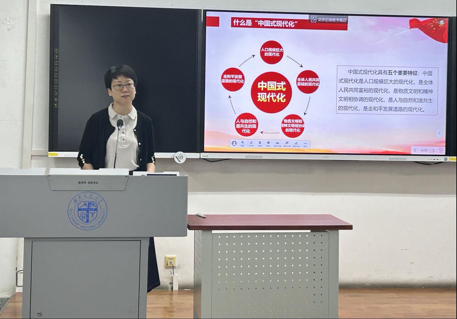 在学院党委副书记刘一杰同志的带领下,支部成员学习了有关中国式现代化的一系列重要论述。认识到中国式现代化的中国特色、本质要求和重大原则等。在当今百年未有之大变局的时代背景下,以什么样的途径、方式、手段实现奋斗目标、完成使命任务呢?答案就是中国式现代化。中国式现代化扎根中国大地、传承中华文明、切合中国实际、独具中国特色,集中体现我们党的宗旨使命,深刻反映社会主义本质,打破了现代化就是西方化的迷思,为人类实现现代化提供了全新选择。